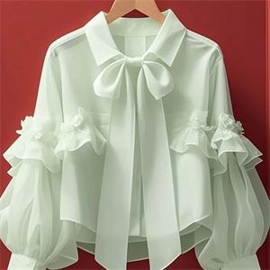 歐美爆款2026古著法式獨特漂亮綠色蝴蝶結長袖襯衫