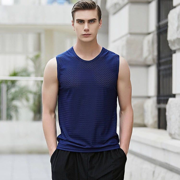男士冰絲網眼背心夏季薄款修身健身運動男無袖背心男打底