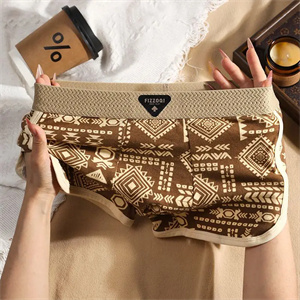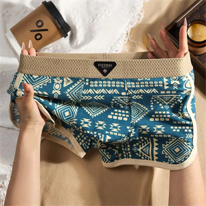 美式復古民族風男士四角內褲純棉透氣平角褲 印花四角褲頭
